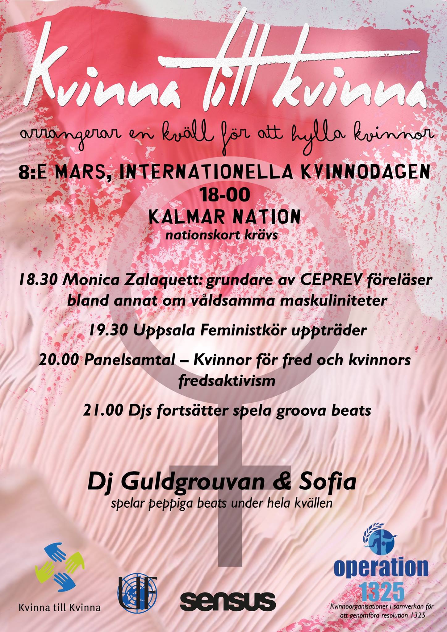 Kvinna till kvinna arrangerar en kväll för att hylla kvinnor. Läs arrangörens flyer.