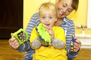 Barn och föräldrar är välkomna till Stadsbibliotekets Skattkammare på musiklek med Maria Reldin.